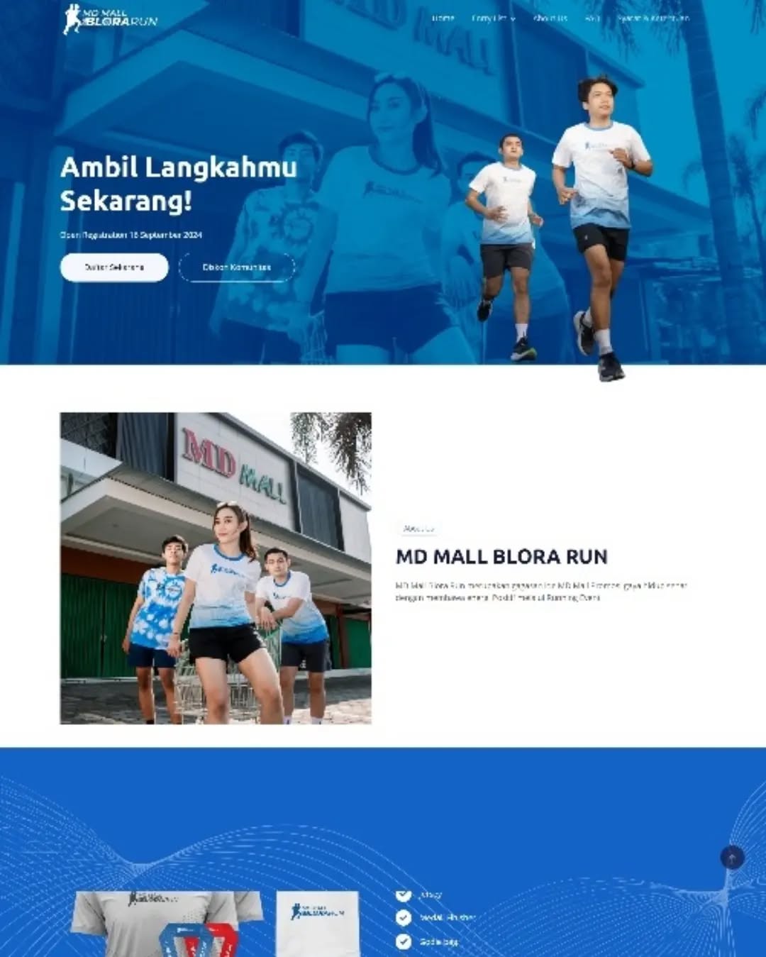 mdmallblorarun.com adalah platform resmi untuk pendaftaran lomba lari. Untuk tahun 2024, tersedia kategori lari 5K, 10K, yang akan digelar pada tahun 2024 di Blora, Jawa Tengah.