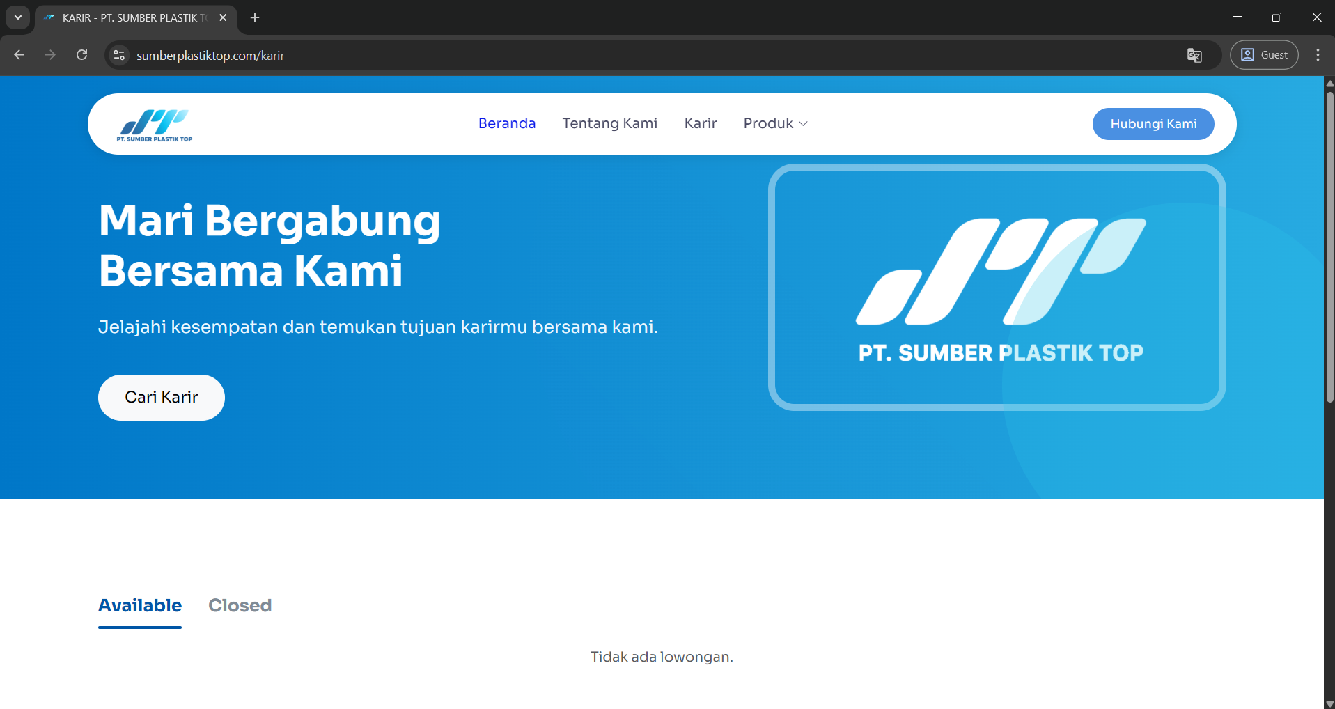 sumberplastiktop.com merupakan website resmi yang dirancang sebagai company profile untuk menampilkan informasi lengkap mengenai perusahaan. Website ini memuat berbagai informasi penting seperti profil perusahaan, visi & misi, sejarah, hingga layanan yang ditawarkan.